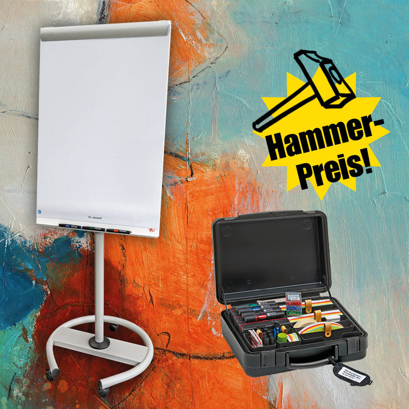 In den besten Präsentationen gibt es Inhalte, die auf sprachlicher Ebene nicht ausgedrückt werden können. Dann kommt das Visualisierungsmaterial ins Spiel. Um die Konzentration deines Publikums zu fokussieren und Informationen übersichtlich darzustellen, sind Flipcharts, Pinnwände und die passenden Schreibgeräte die perfekten Instrumente. Du kannst mit unserem Präsentations-, Moderations- und Schulungsmaterial im Handumdrehen Daten, Fakten und Erkenntnisse so gestalten, dass sie im Gedächtnis bleiben.