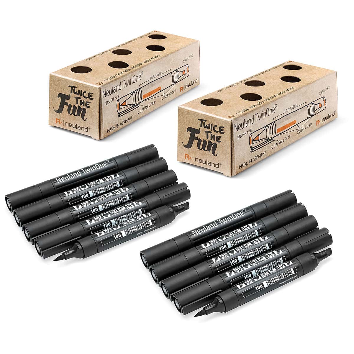Neuland Marker und Neuland Stifte sind hochwertige Begleiter in unterschiedlichsten Ausführungen. Sie passen sich deinem Bedarf an, alle sind nachfüllbar und die Spitzen sind auswechselbar. Der TwinOne ist mit zwei verschiedenen Spitzen bestückt.