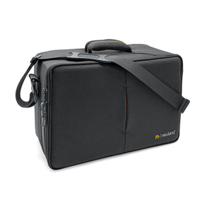 La mallette souple en textile noir est matelassée, dotée d'une poignée de transport pratique