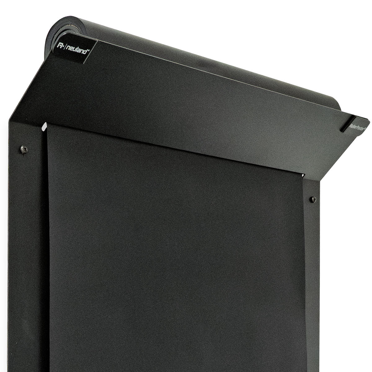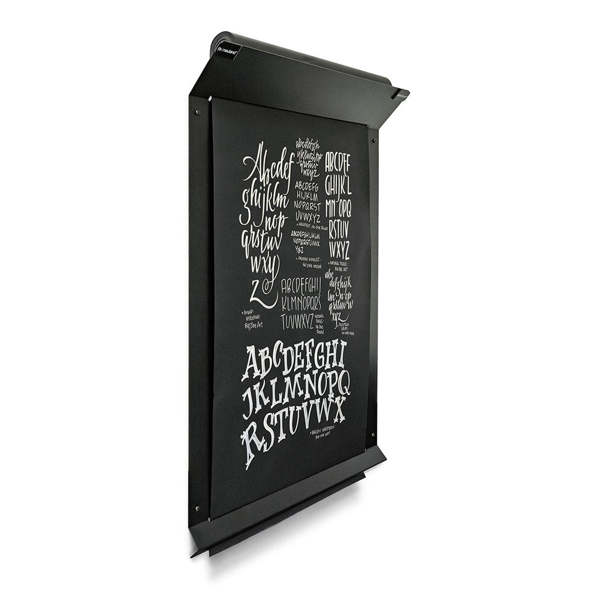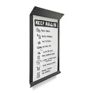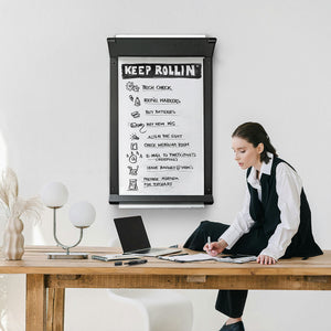 Bring deine guten Ideen ins Rollen: RollerPoster® V2, im eleganten, mattschwarzen Look mit integrierter Papierrolle, Magnettafel und Abreissschiene.