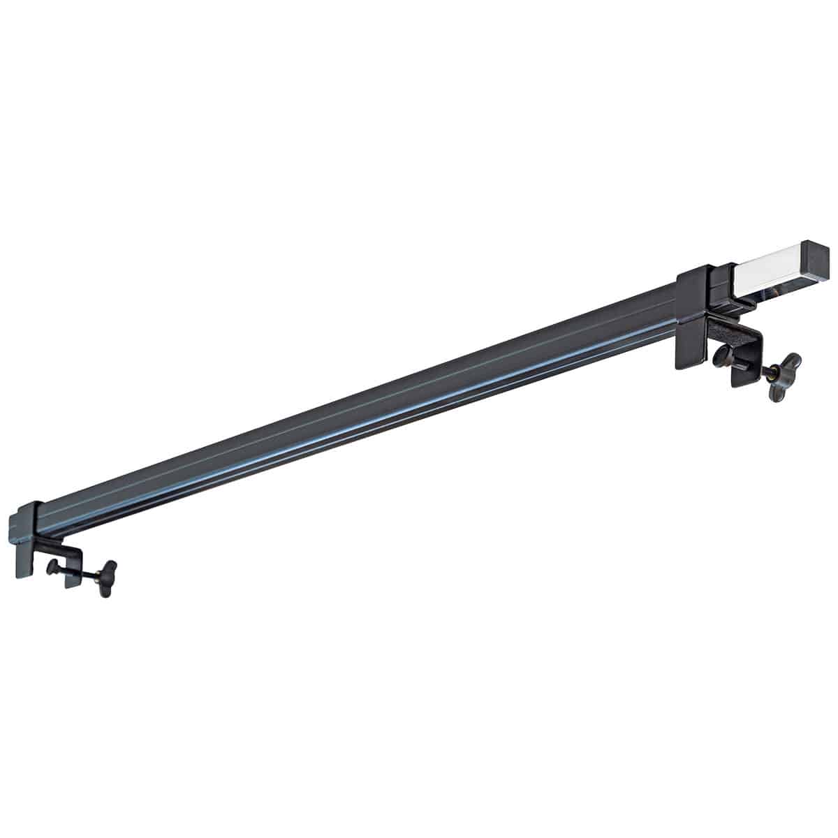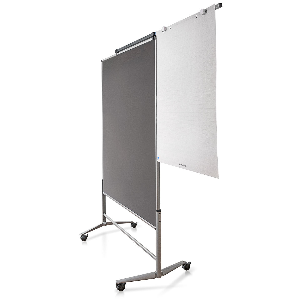 Le support universel de feuilles supplémentaires ajoute cette fonction pratique à votre FlipChart en quelques secondes. Il suffit de le mettre en place, de serrer les vis de la poignée et le tour est joué. Le tube chromé extensible s'enclenche par un mécanisme à bouton-poussoir, aussi bien en état de transport qu'en état de travail. Convient pour : EuroFlip®, B-Vario et tous les tableaux d'affichage autoportants de Neuland.