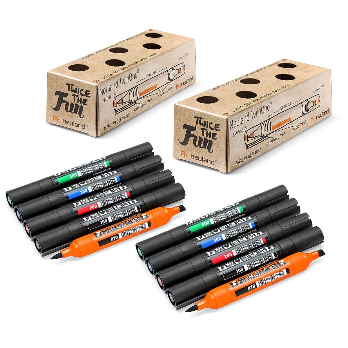 2x Neuland TwinOne® Keil- und Rundspitze, 5er Set (schwarz, rot, blau oder grün) oder Set 2 (Outliner, schwarz, rot, blau und grün)